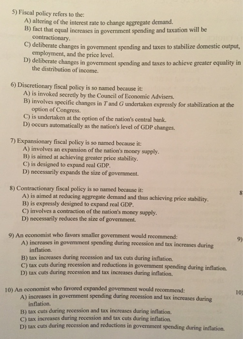 Solved Fiscal Policy Refers To The A Altering Of The Chegg Com