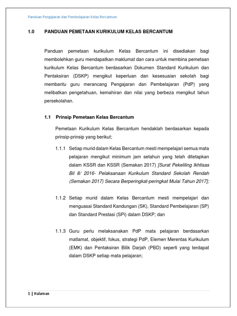 Garis Panduan Kelas Bercantum Pdf